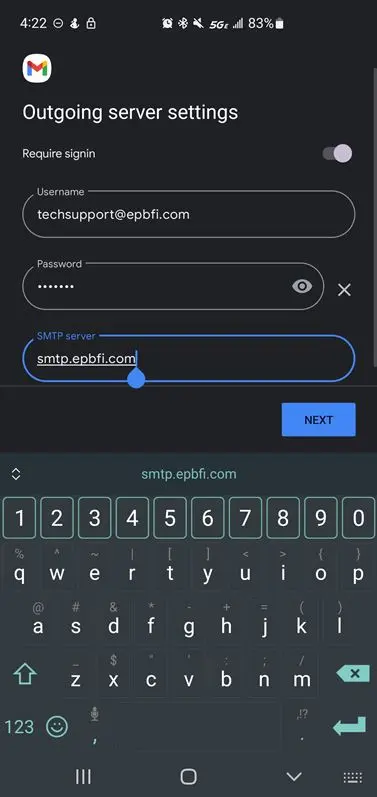 - Enter the outgoing server hostname.