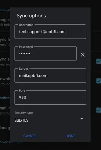 Set incoming server settings