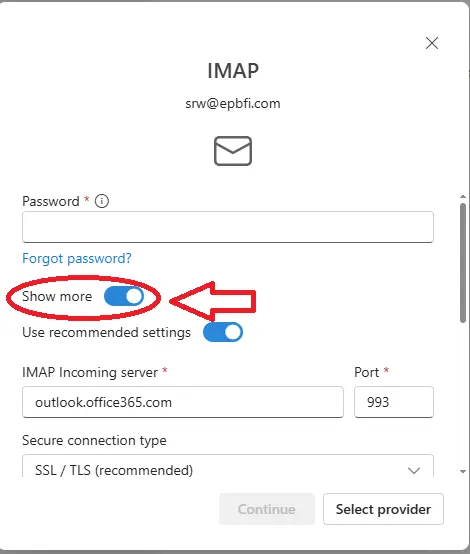 You will see a screen similar to the 'add account' step, but now there will be and Advanced Setup option.